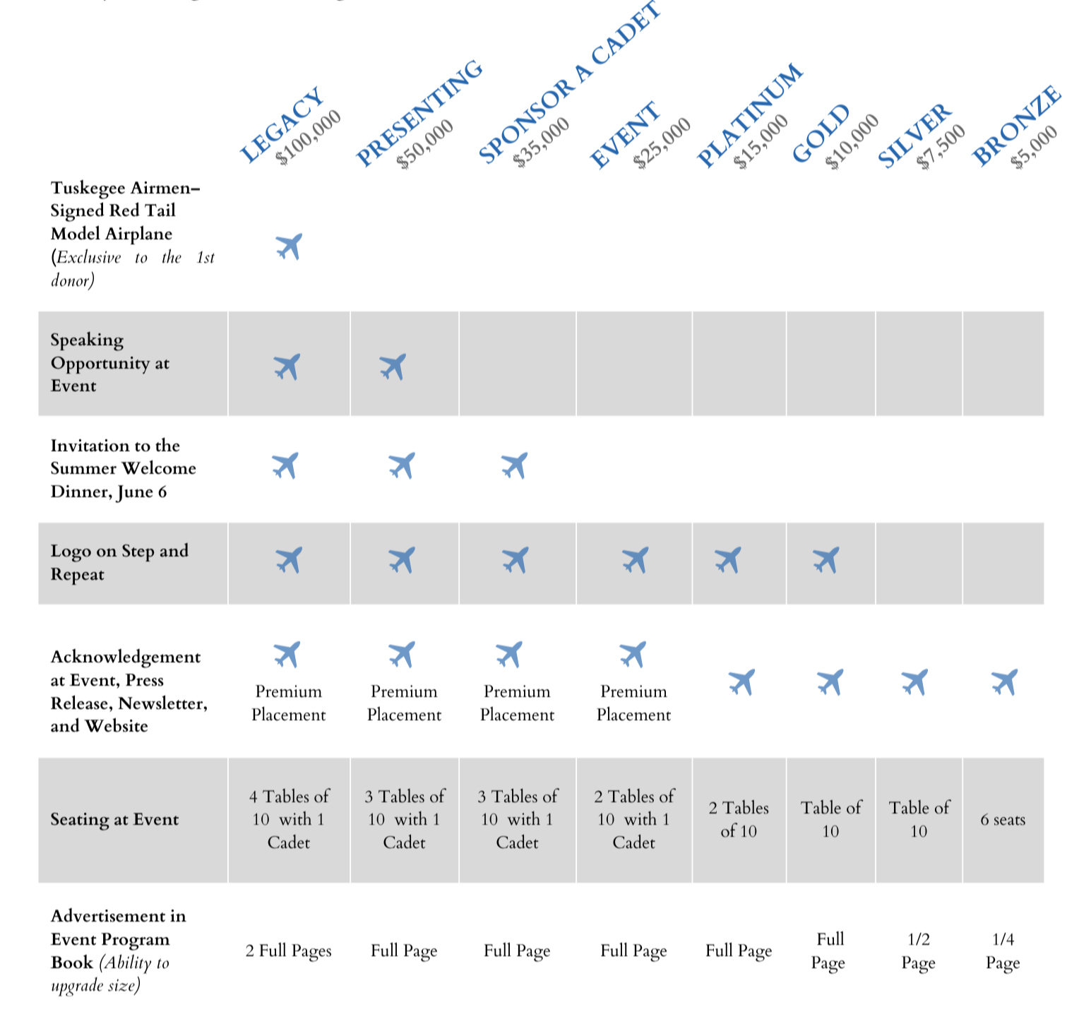 Your partnership fuels opportunity for the next generation of aviators. Become a Red Tail Ball sponsor and directly expand access to flight training and career pathways for youth.